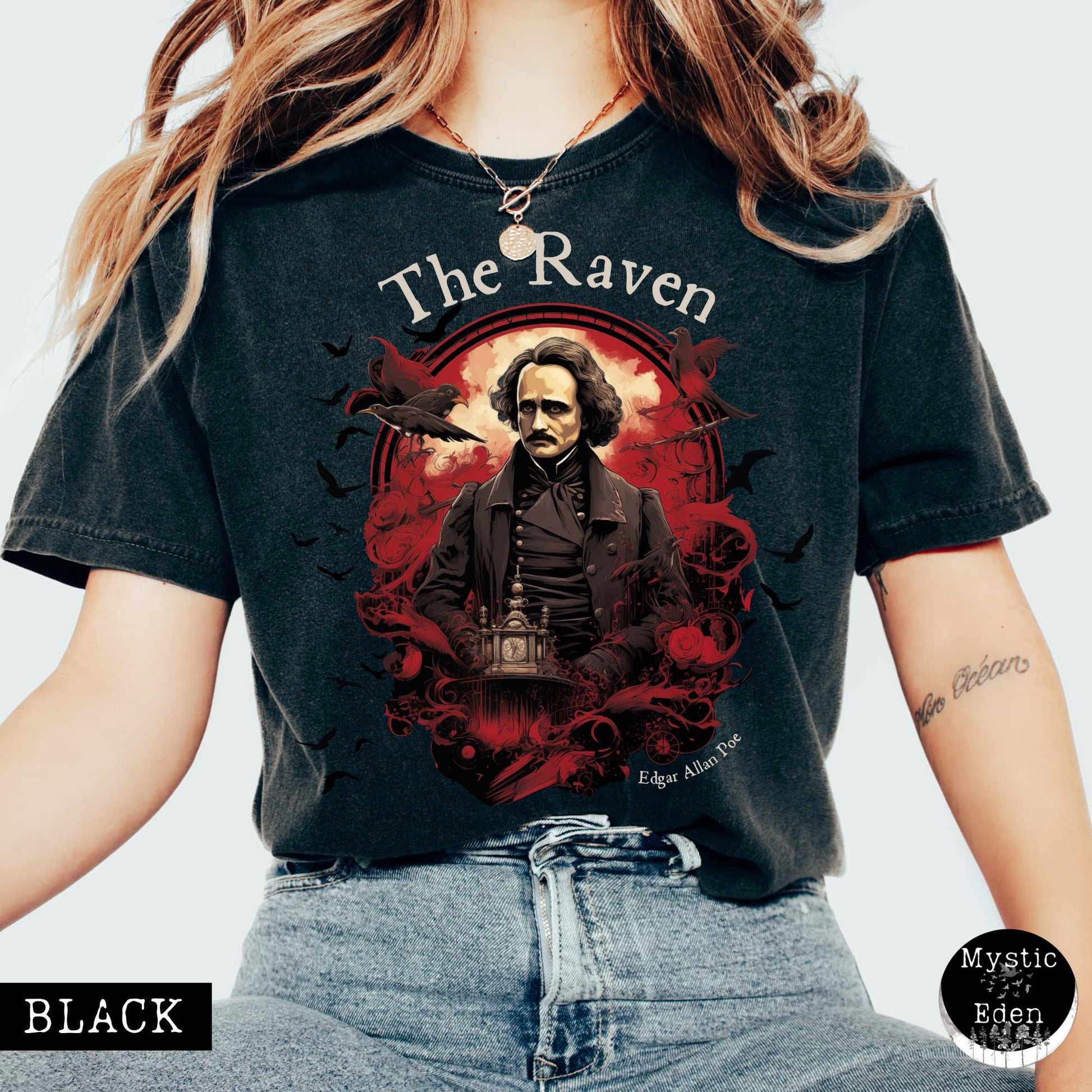 The Raven Edgar Allan Poe Shirt – The Mystic Eden Skip to content